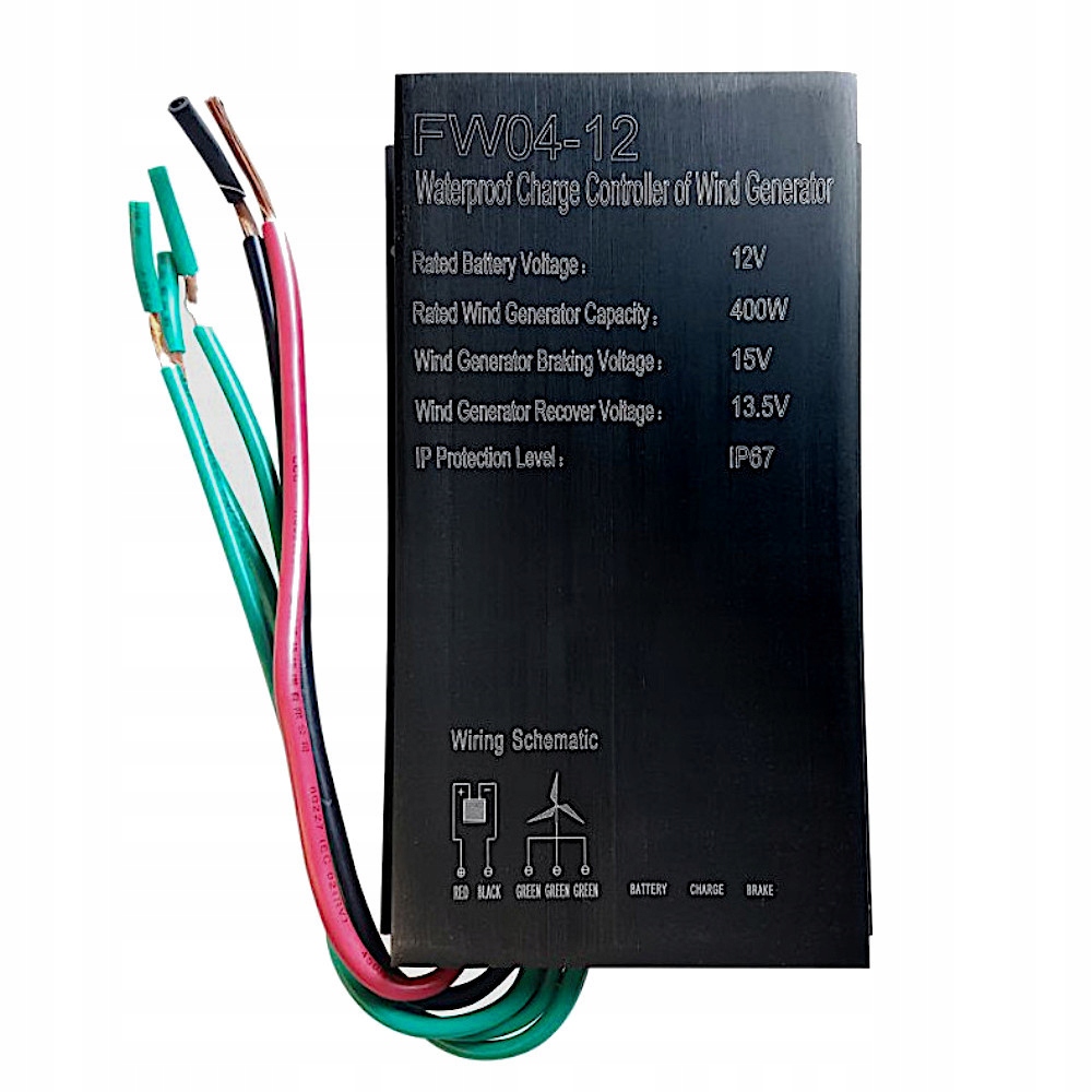 Контроллер зарядки FW04-12 для ветряных турбин максимальной мощностью 12В 400Вт. Контроллер заряда преобразует переменный ток, генерируемый турбиной, в постоянный ток для правильной зарядки аккумулятора.