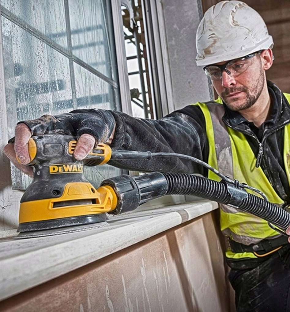 - Встроенная розетка для пылеудаления, обеспечивающая прямое подключение к пылесосу с помощью системы DEWALT AirLock или мешка для сбора пыли.