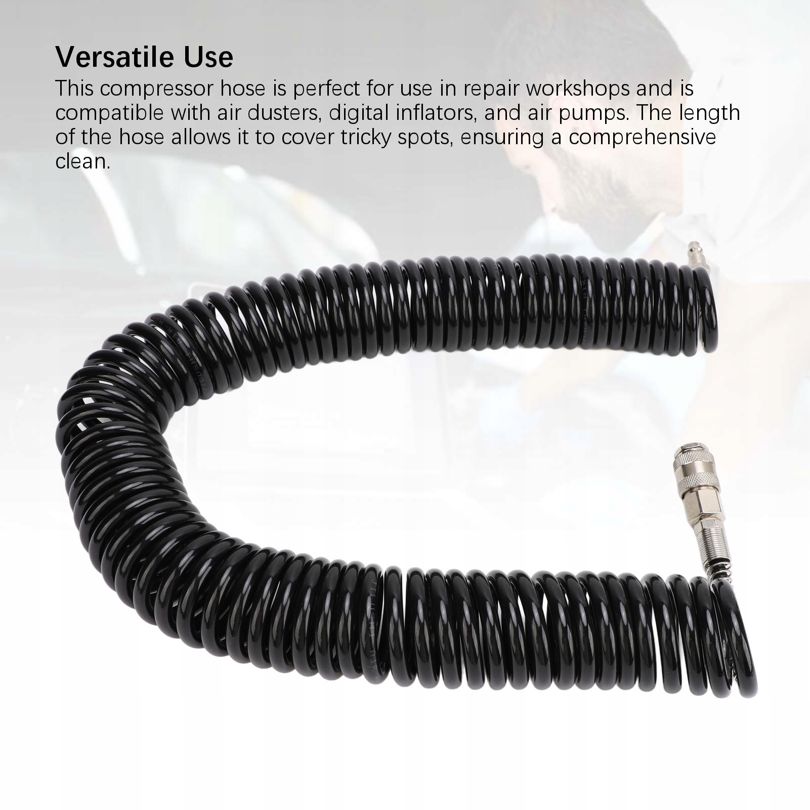 4. Универсальное использование: этот шланг компрессора идеально подходит для использования в ремонтных мастерских и совместим с пневматическими пружинами, цифровыми насосами и воздушными насосами. Длина шланга позволяет покрывать труднодоступные места, обеспечивая комплексную очистку.