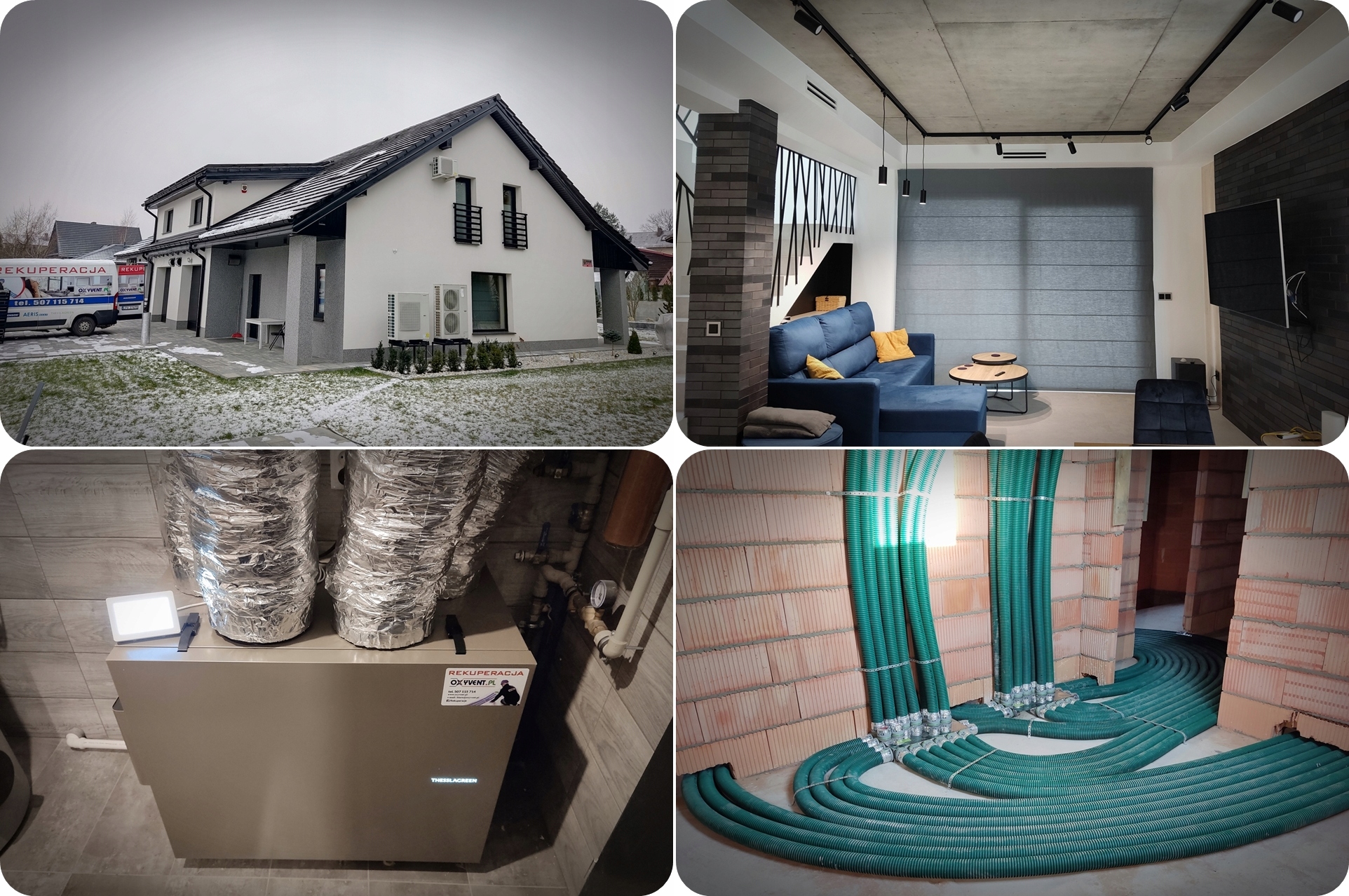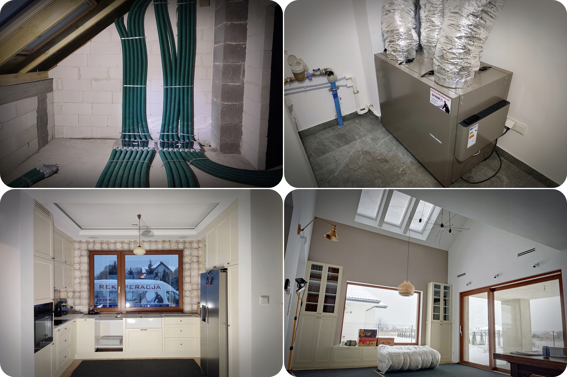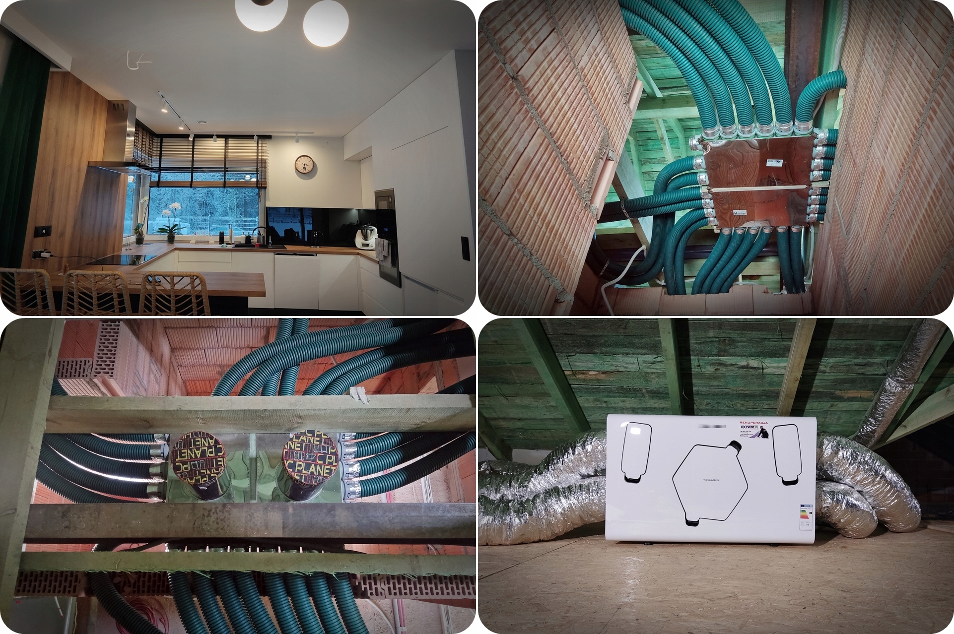 Все наши проекты выполняются на основе не только существующих и действующих норм строительного законодательства, но и со всей тщательностью и старанием при их реализации. У нас есть опытная команда монтажников с многолетним опытом и очень богатое портфолио реализованных проектов, в том числе с рекуператорами THESSLAGREEN со всеми моделями, доступными на рынке, в различных конфигурациях, включая вариант GHE (земляной теплообменник). Установка вашей панели управления вскоре может выглядеть так, как показано ниже :-)