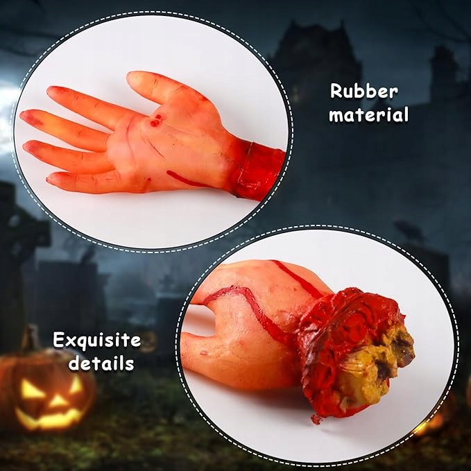 【Набор для Хэллоуина】: вы получите 2 отдельные руки и 5 отдельных пальцев. Вы можете разместить эти реквизиты для Хэллоуина на диване, столе, посуде, чтобы отпугнуть друзей.