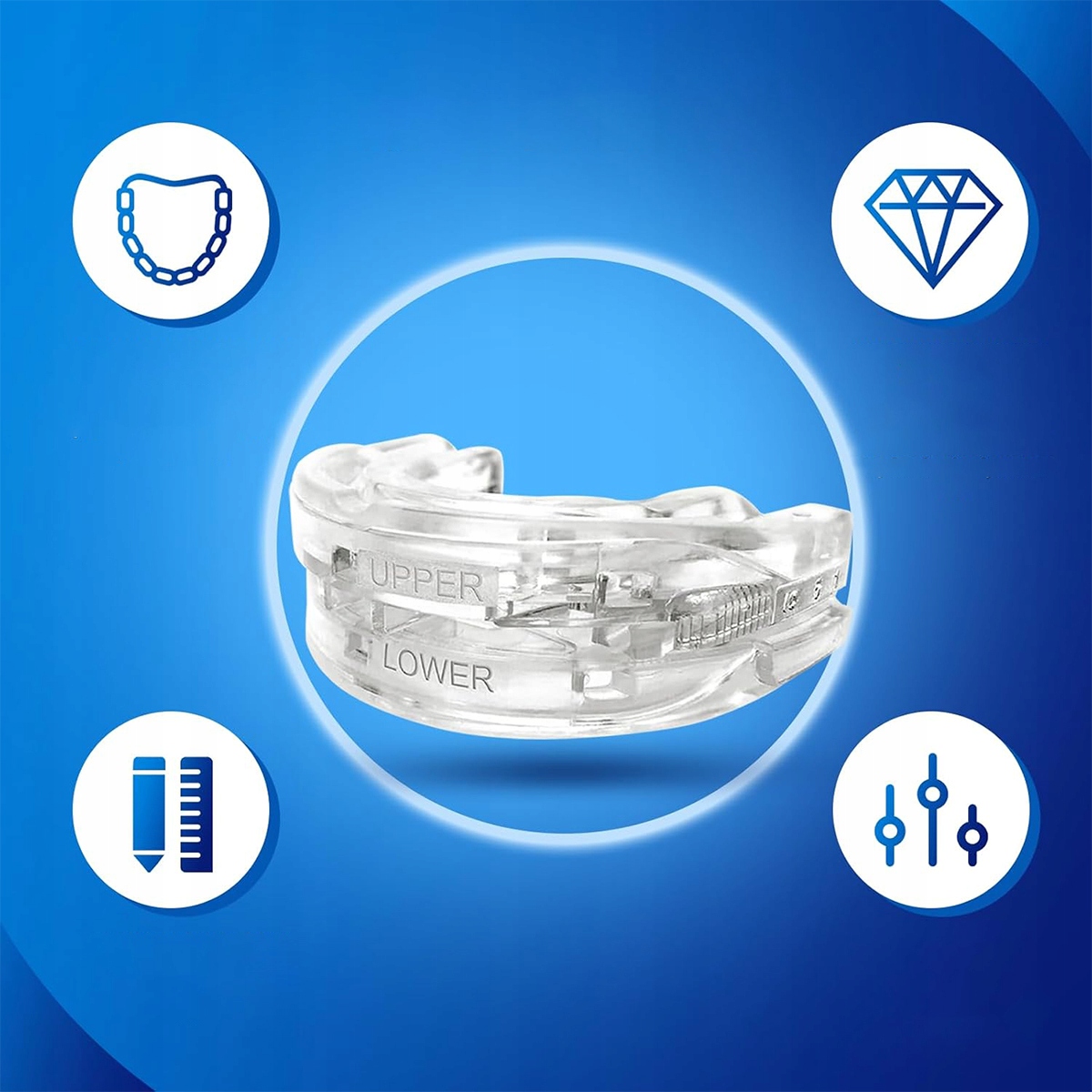 ✅【Регулируемая, удобная посадка】 Имеет эргономичный дизайн, который смягчается теплой водой для индивидуального положения челюсти. В комплект входит прецизионная измерительная линейка для регулировки в зависимости от индивидуальной структуры зубов, обеспечивающая оптимальную посадку и максимальную эффективность.