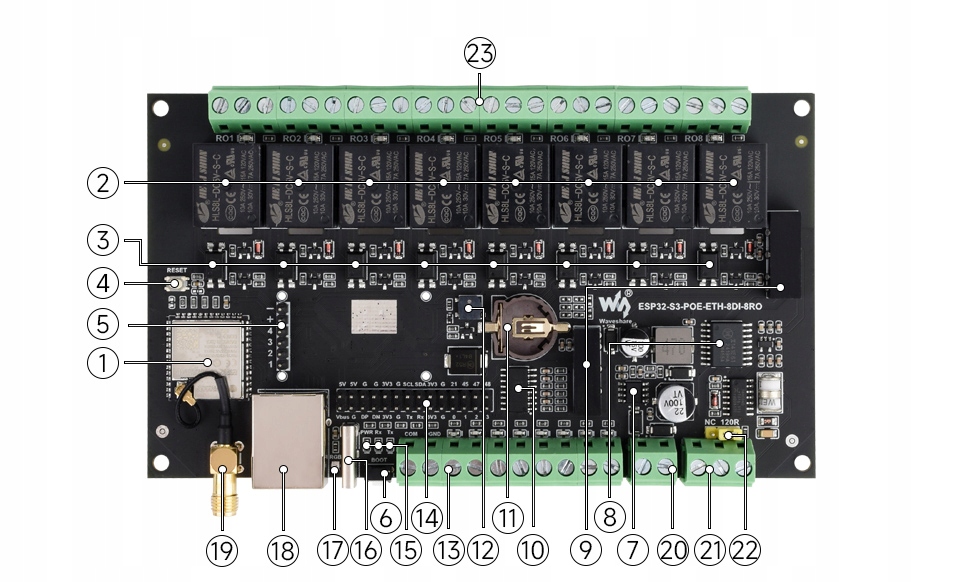 Дополнительная информация на сайте производителя: https://www.waveshare.com/wiki/ESP32-S3-ETH-8DI-8RO