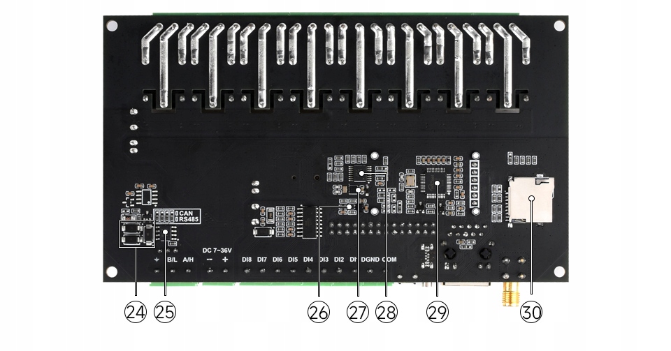 - 2. 8-канальные реле – ≤10А250В переменного тока или ≤10А30В постоянного тока на канал