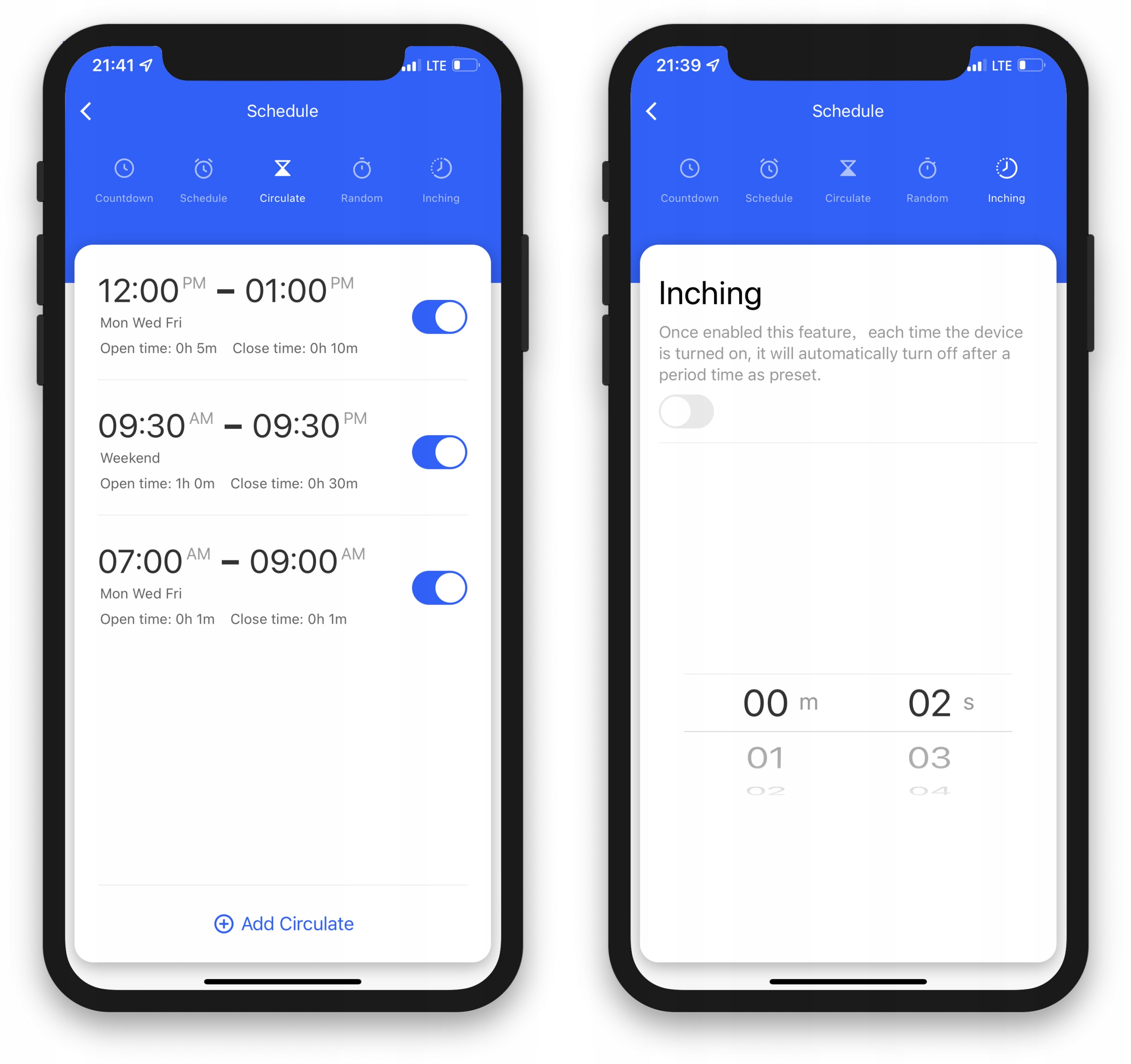 - Циркуляция – работа в циклическом режиме. Например: включение на 1 минуту, выключение на 2 минуты - в непрерывном цикле, в определенное время и дни.