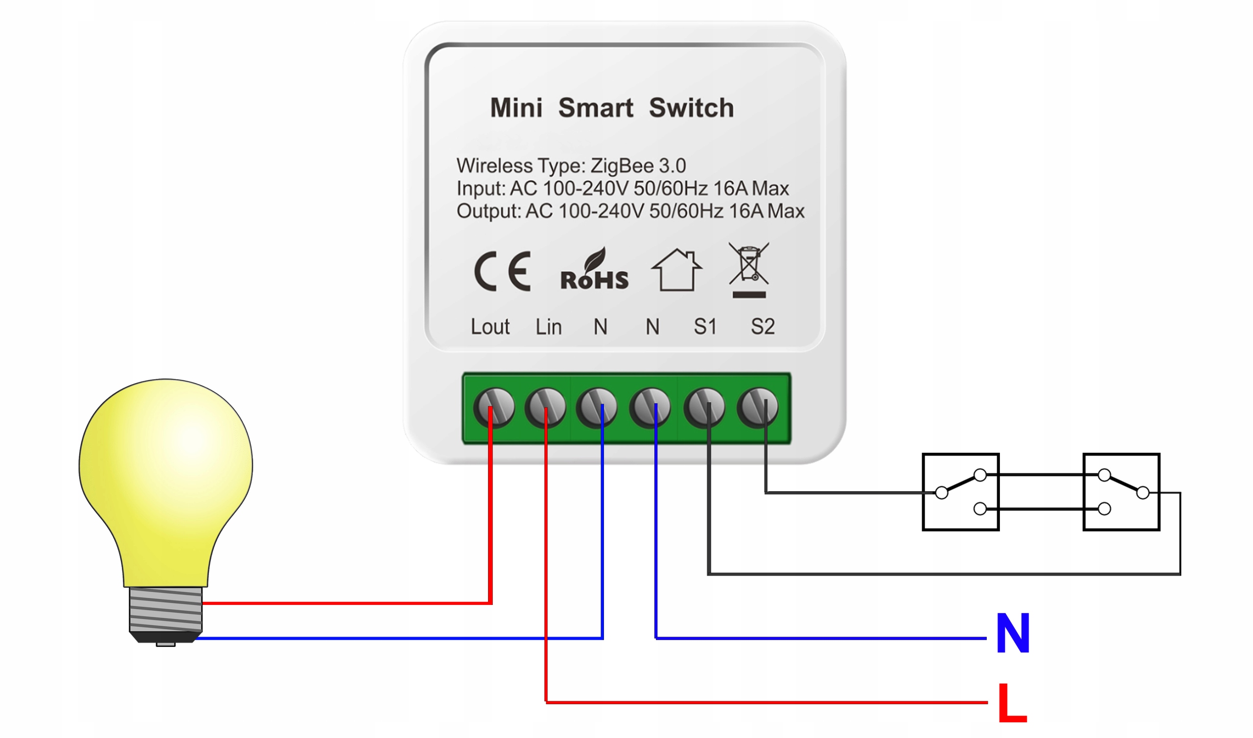 Один переключатель ZigBee 3.0 скрытого монтажа с реле мощностью 3500 Вт