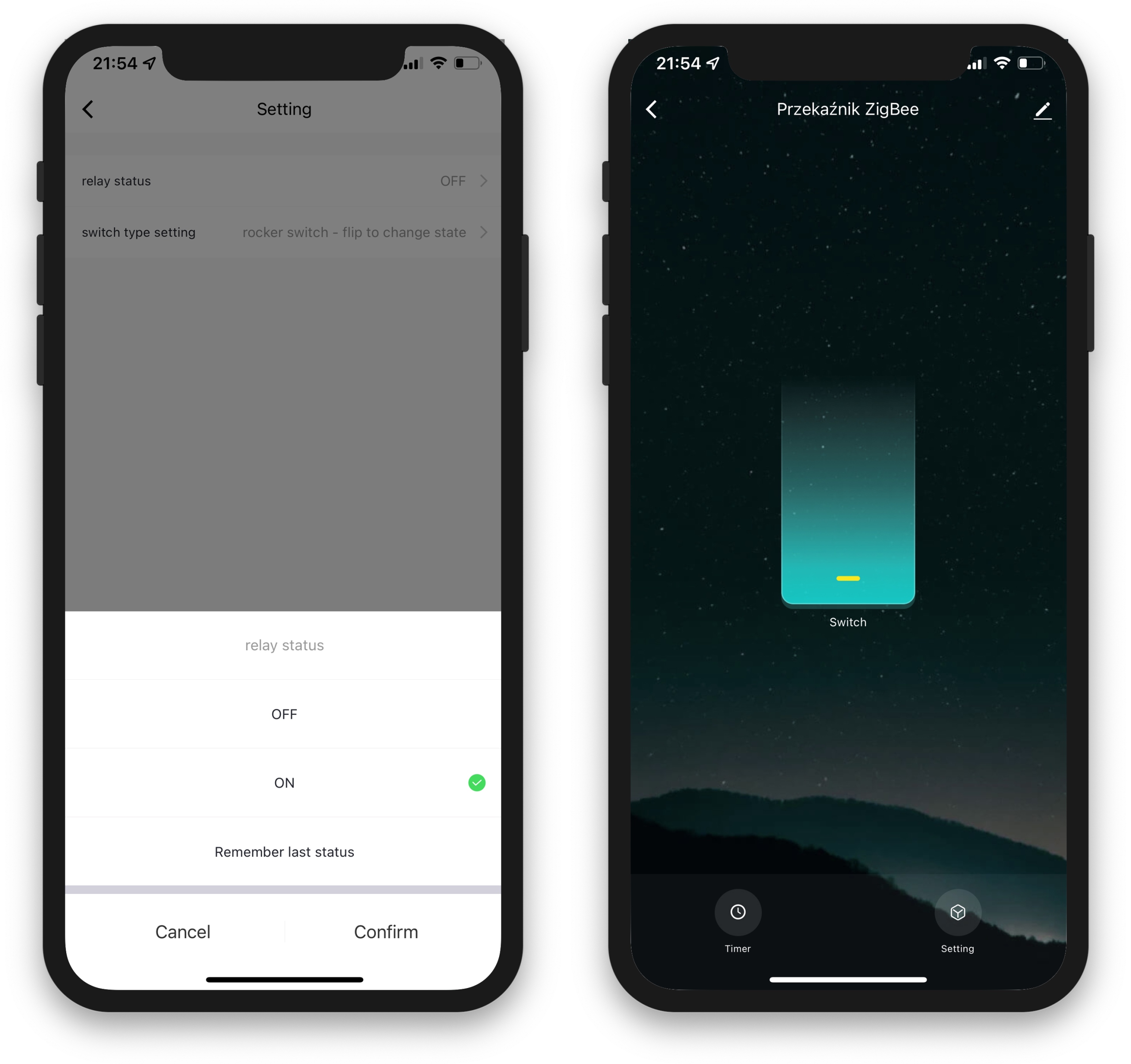 - Inching — обратный отсчет после включения. Каждый раз, когда реле включается, оно выключается через заданное время. Забыли выключить свет? - установите функцию Inching на 30 минут. При каждом включении реле автоматически выключает свет через 30 минут.