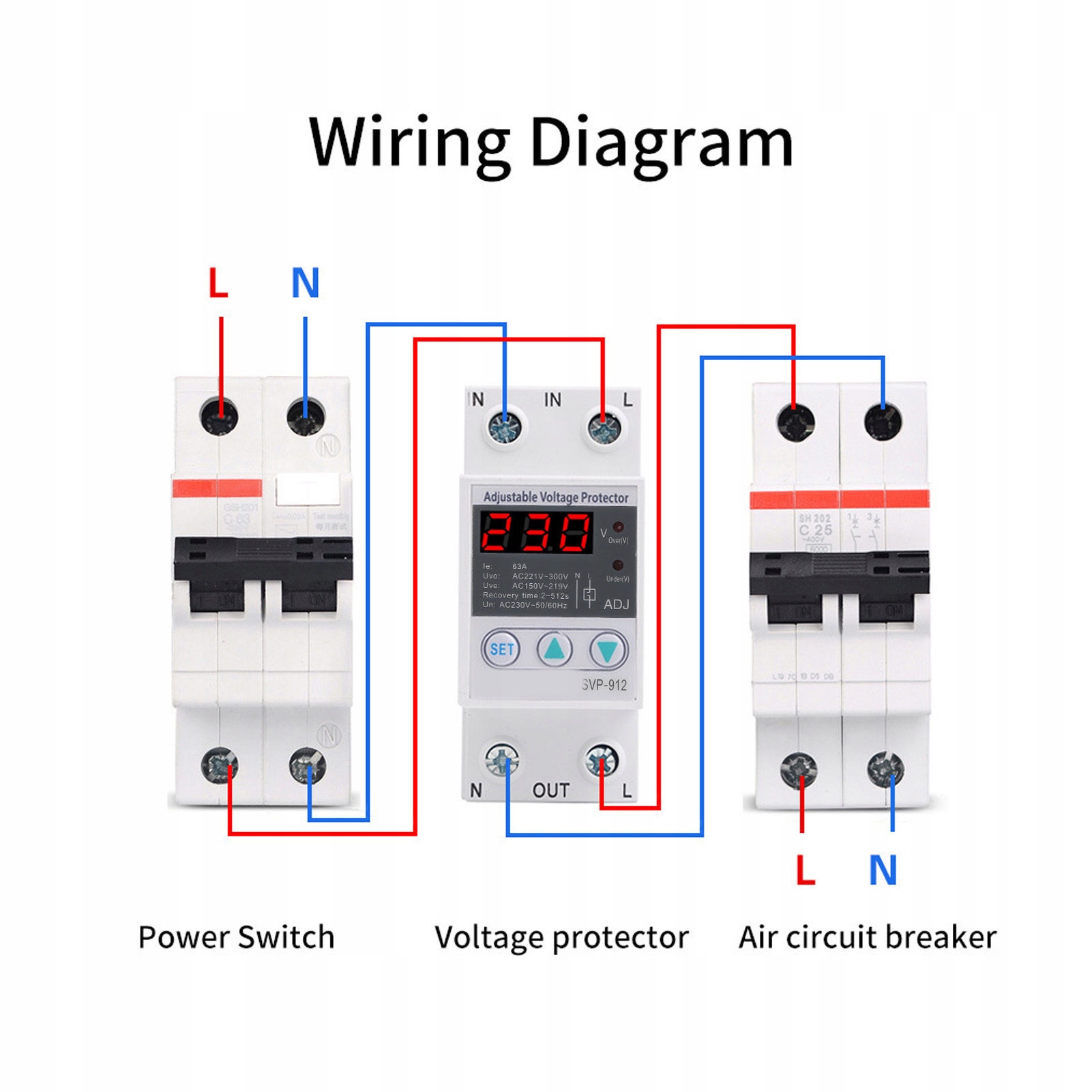 2. Значения защиты от повышенного и пониженного напряжения, а также значения восстановления регулируются, а также регулируется время срабатывания защиты от повышенного и пониженного напряжения.