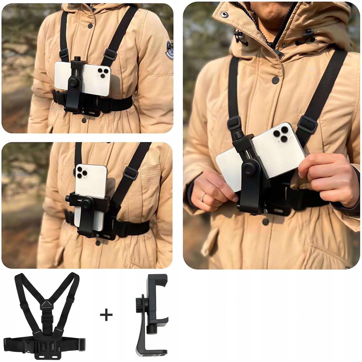 📱【Отличный выбор для POV/VLOG】 Телефон можно размещать как горизонтально, так и вертикально. J-образный крючок и длинный винт позволяют поворачивать телефон на 90°. Размер этого ремешка легко регулируется, подходит даже для самых больших зимних курток, подходит для широкого диапазона размеров тела.
