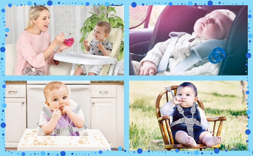 【Новейший дизайн】Очень легко надевать и снимать, благодаря перфорации вы сэкономите время, расстегивая пряжку. Оно более практично для ежедневного использования, подходит для использования с большинством типов колясок, детских колясок, автокресел и стульчиков для кормления.