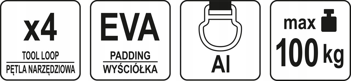 - четыре петли для ремня для инструментов в поясном ремне для ручных инструментов весом макс. 2 кг на петлю;