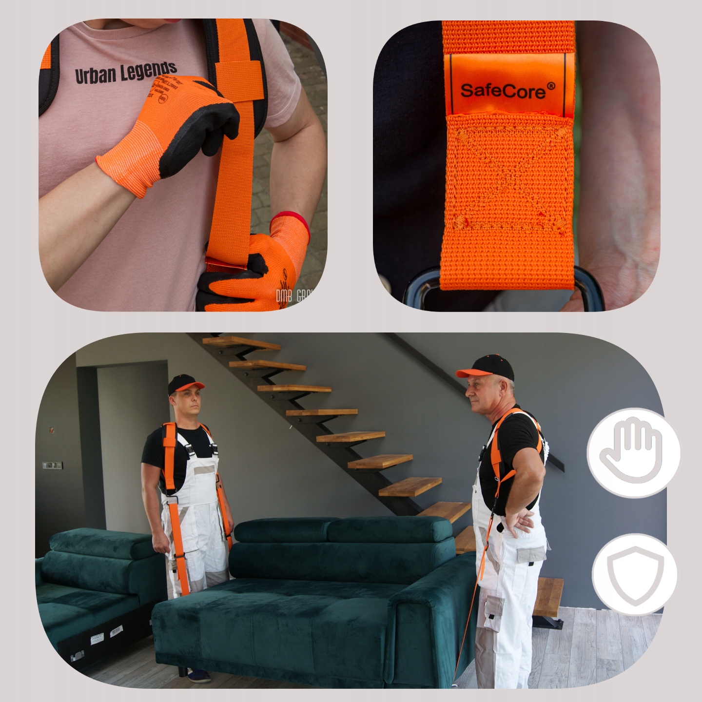 Ремни польской марки SafeCore специально разработаны для безопасной перевозки мебели и прочего тяжелые предметы (например, бытовая техника). Они отличаются высокой прочностью и отличным качеством изготовления.