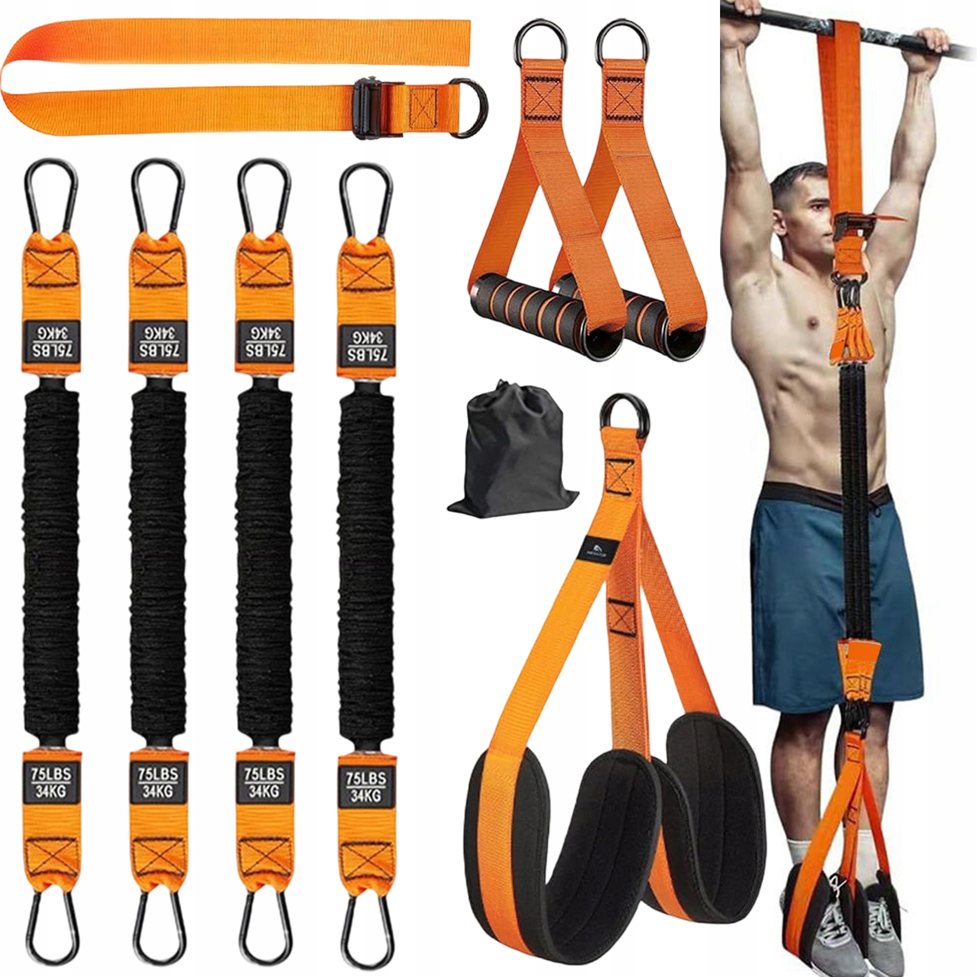 - 💪 Прогрессивная нагрузка 34-136 кг, легкие подтягивания. В комплект входят 4 ленты сопротивления, охватывающие широкий диапазон сопротивления от 34 кг до 136 кг! Новички могут начать с одного ремня и постепенно уменьшать сопротивление по мере увеличения силы, пока, наконец, не достигнут стандартного подтягивания без посторонней помощи. Постепенно укрепите верхнюю часть тела и попрощайтесь со смущением «невозможности подтянуться»!