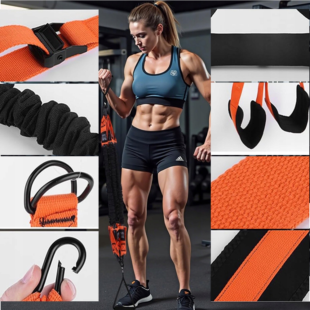 - 🔒 Материалы промышленного класса для долговечности и душевного спокойствия. Металлические кольца изготовлены из прочных материалов промышленного класса, а ремни и эспандеры изготовлены из армированного материала, что делает их устойчивыми к износу, разрывам и высокой несущей способностью. Даже при высоких нагрузках и интенсивных тренировках они стабильно поддерживают вес, полностью исключая риск поломки и обеспечивая более безопасную тренировку.