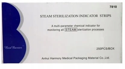 Встроенный индикаторный химический тест для контроля паровой стерилизации. Предназначен для эффективного контроля критических параметров паровой стерилизации и его проникновения в процесс. Во время стерилизации паром индикатор на конце полоски меняет цвет с желтого на черный. Подходит для использования в паровых стерилизаторах всех типов. Он соответствует стандарту ISO 11140-1 как тест класса 4. Тест-полоска имеет перфорацию, позволяющую разделить ее на две равные части.