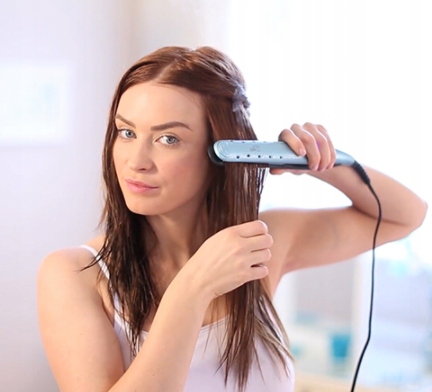 Просто выпрямите подсушенные полотенцем волосы, а устройство позаботится обо всем остальном. Когда вы прикладываете нагретые пластины к волосам, перемещая их от корней к кончикам последующих прядей, лишняя вода испаряется через специально предназначенные отверстия, а волосы при этом выпрямляются.