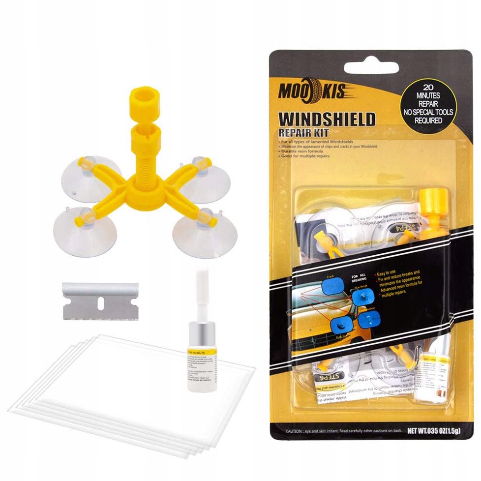 Ремкомплект позволяет самостоятельно и легко справиться с трещинами и сколами на лобовом стекле вашего автомобиля. Изделие снижает напряжение в месте трещины за счет заполнения его специальной смесью эпоксидной смолы. Благодаря этому царапины и трещины на стекле становятся практически незаметными.
