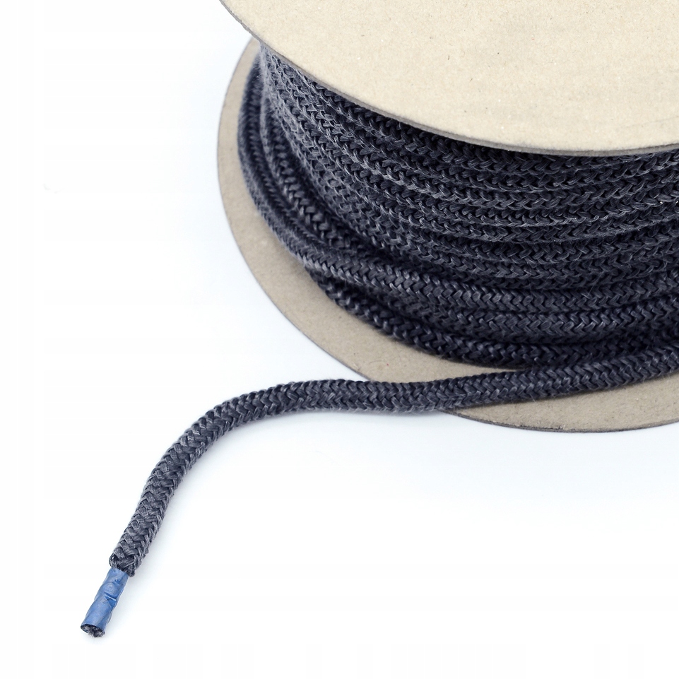 Цвет графита. Он устойчив к высоким температурам (до 550°C) и имеет круглое сечение Ø 6 мм. Шнуры окрашены (пропитаны). Он графитового цвета. Шнур гибкий, поэтому легко адаптируется к уплотняемым поверхностям. Имеет высокую устойчивость к разрыву при многократных изгибах и ко многим химическим соединениям.