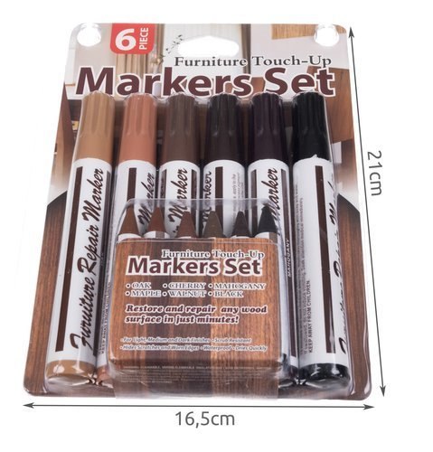 - ТЕХНИЧЕСКИЕ ХАРАКТЕРИСТИКИ - количество цветов: 6: дуб, вишня, красное дерево, клен, орех, черный; тип: маркеры + воск; материал: пластик; размеры: 21/16,5/4,5 см; вес в упаковке: 0,17 кг.