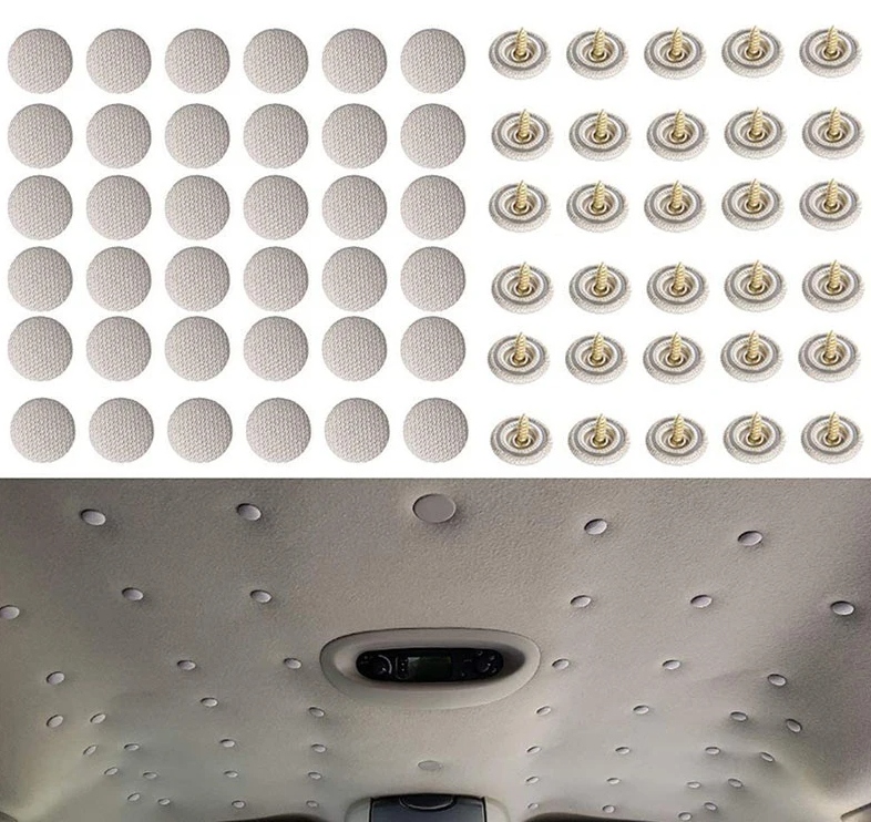 - Комплект подходит для крепления материалов ко всем типам автомобилей, что делает его универсальным инструментом для ремонта обивки потолка. li>