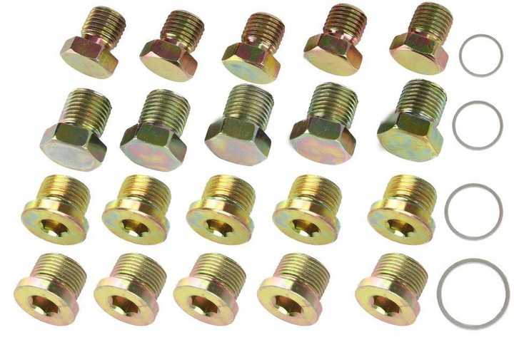 - Комплектация: Комплект состоит из 64 элементов, включая масляные пробки различных размеров, подходящие для большинства автомобилей.