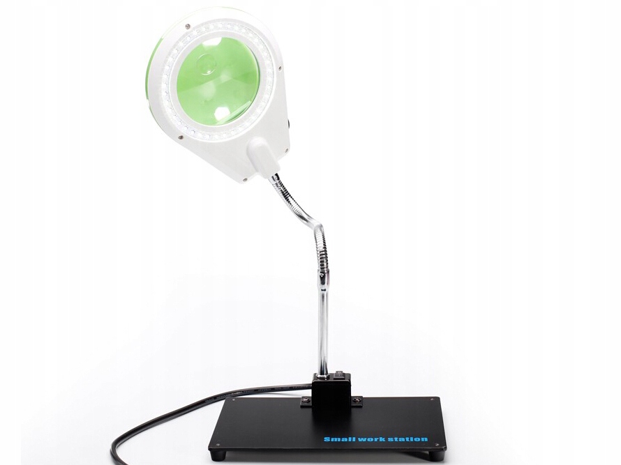 628A-II — светильник с большой лупой, светодиодной подсветкой и устойчивым металлическим основанием. Лампу можно свободно регулировать благодаря гибкой стойке. Лампа светится с помощью 40 светодиодов, равномерно расположенных вокруг линзы. Интенсивность света можно плавно регулировать с помощью ручки. Лампа питается от электрической сети. Увеличительное стекло имеет размер 86 мм и увеличение 5D и меньшее стекло 20 мм и увеличение . 10D. Лампа с лупой прикреплена к металлическому основанию. В комплект поставки входят магнитные держатели для быстрой сборки.