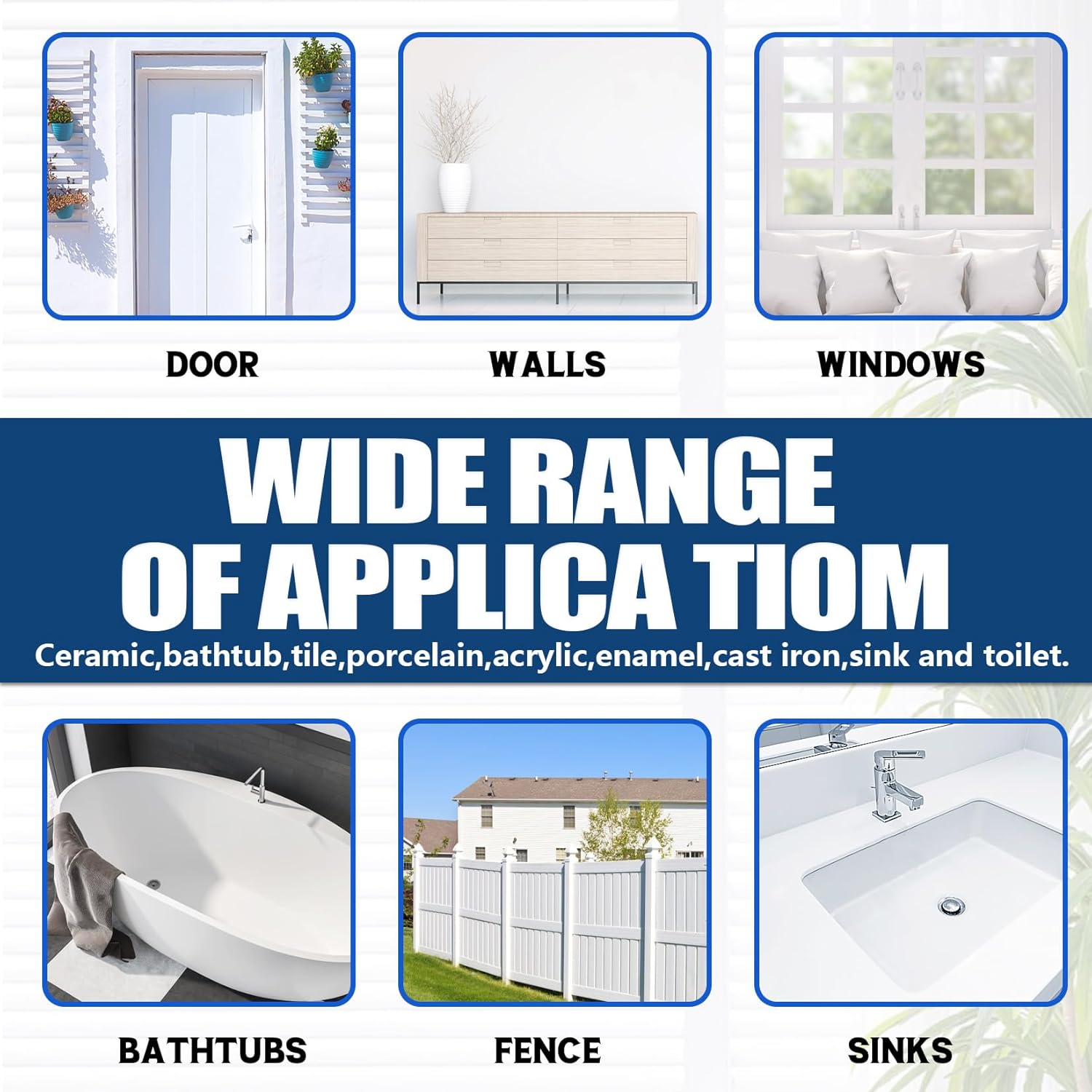 - Универсальность: Идеально подходит для ванн, туалетов, умывальников, керамической плитки и даже оконных и дверных рам.