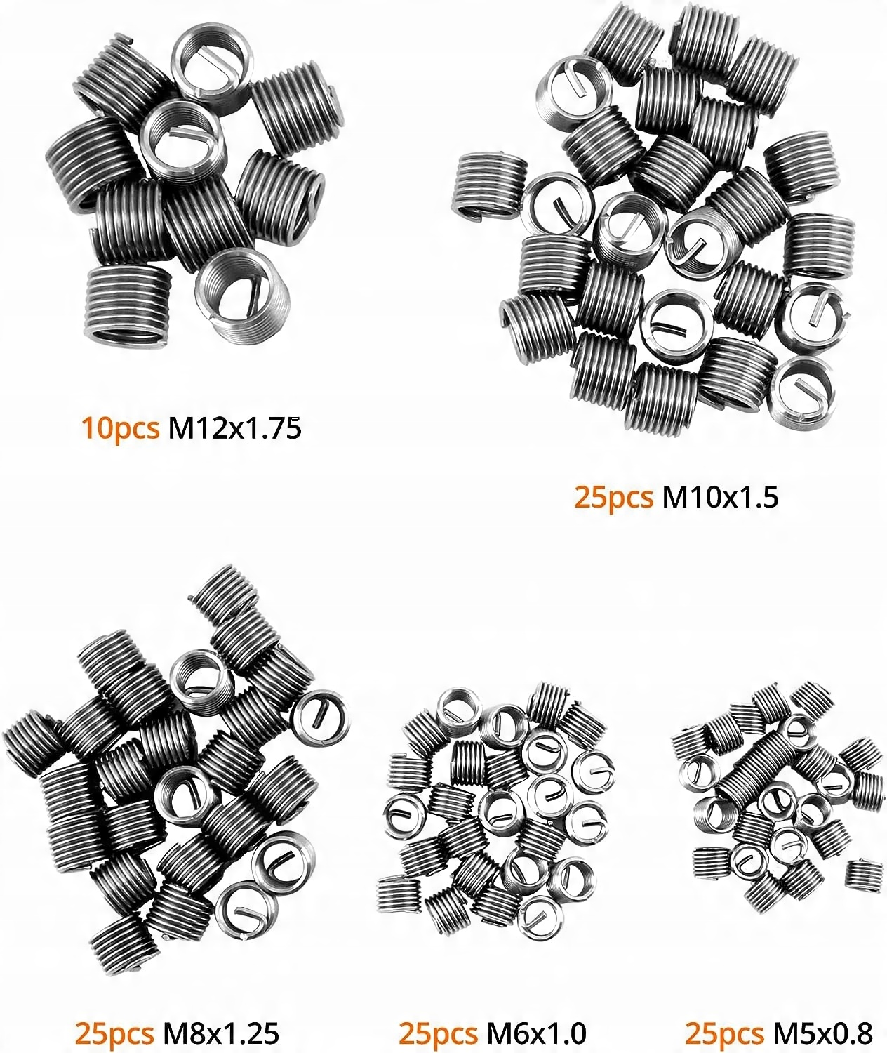 Набор для ремонта резьбы — идеальный инструмент для поврежденной резьбы в мягких металлах. Подходит для резьбы M5, M6, M8, M10 и M12. Он защищает их от износа и повреждений.