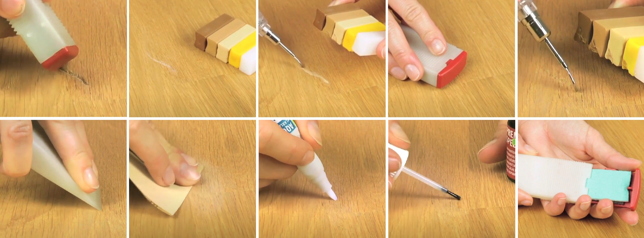 Компактный набор Picobello® для ретуши царапин, дефектов и вмятин на промасленных или вощеных деревянных предметах. Идеально подходит для ремонта мебели, паркета и полов. Широкий выбор цветов шпатлевки, которые можно смешивать любым способом, обеспечит идеальное сочетание шпатлевки с поверхностью любого цвета. В комплект входят 15 брусков шпатлевки DREWMIX® MATTE, все необходимые инструменты для выполнения ретуши, кисть-консилер LAKFIX® AQUA и специальное ретуширующее масло OLEOMIX® для защиты и придания естественного вида отремонтированной поверхности. Все элементы упакованы в удобный пластиковый кейс.