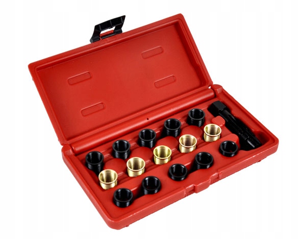 Комплект для ремонта резьбы головок свечей зажигания, предназначенный для автомобильных мастерских и ремонтных служб.