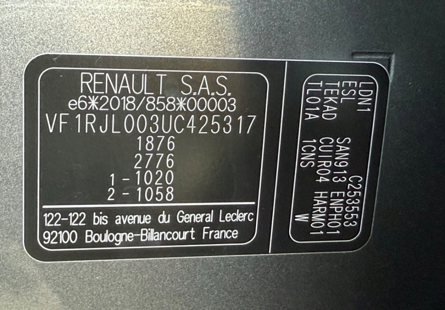 Нет. Vin vf1rjl003uc425314 Изображение номинальной пластины на последней фотографии