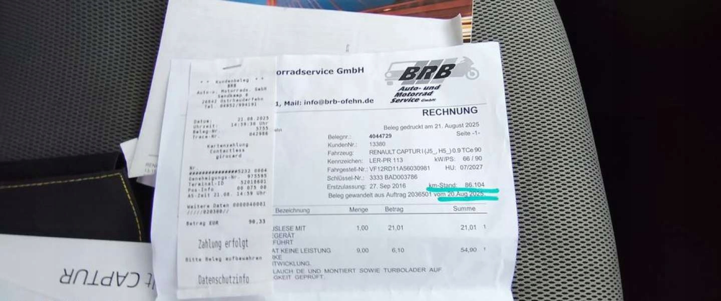 Автомобиль пригнан из Германии. Предлагаю RENAULT CAPTUR 2016 года в версии Energy TCe Alize. Автомобиль в очень хорошем техническом и визуальном состоянии, готов к эксплуатации без каких-либо дополнительных затрат. Автомобиль полностью безаварийный – все элементы кузова имеют заводскую краску. Автомобиль в идеальном состоянии - для требовательных клиентов. В цену включены сборы, связанные с регистрацией в Польше - за покупателя несет ответственность только отдел связи - 160 злотых. В автомобиле недавно меняли моторное масло и фильтр. На машине стоит всесезонная резина 2023 года выпуска - протектор как новый.