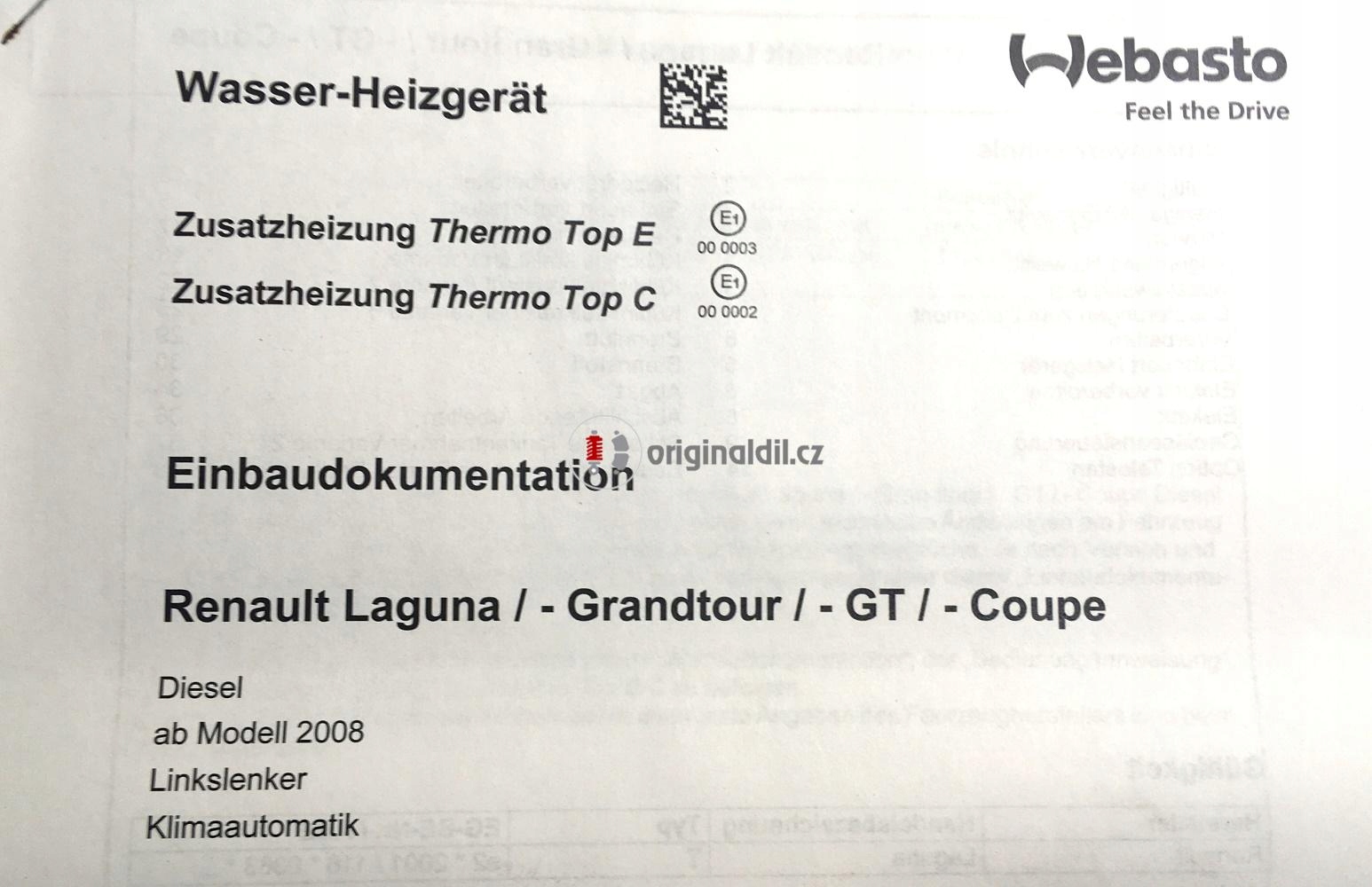 Renault Laguna Grandtour GT Coupe Дополнительное отопление Webasto 7701378236