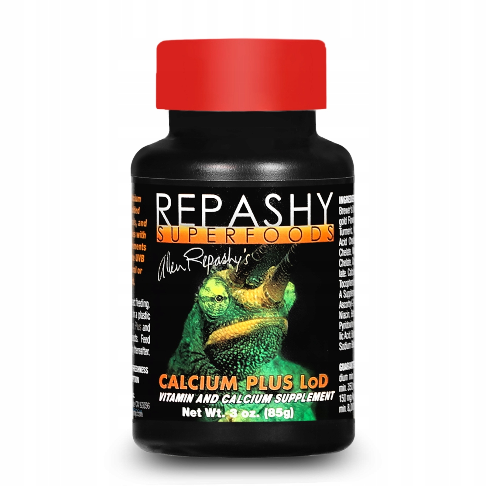 Repashy Calcium Plus LoD — это комплексная добавка кальция, содержащая дополнительные витамины, микроэлементы и каротиноиды. Препарат создан для видов с низкой потребностью в витамине D, имеющих умеренный доступ к UVB-излучению солнечных лучей. Производитель включает в свое предложение три вида этих смесей – Репаши Кальций Плюс ЛоД – препарат со сниженным уровнем витаминов.