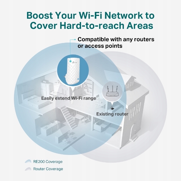 ✔️ Поместите RE190 между маршрутизатором и беспроводными устройствами, чтобы расширить зону действия сети Wi-Fi и получить избавиться от проблемы «мертвых зон». Наслаждайтесь отличным беспроводным соединением по всему дому или офису. Два диапазона Wi-Fi с общей пропускной способностью до 750 Мбит/с в расширенной сети покроют площадь до 185 м2 и дадут пользователю возможность использовать быстрые соединения, передавая таким образом фильмы без перебоев в HD-качестве, игра в Интернете и многие другие действия, которые нагружают сеть.