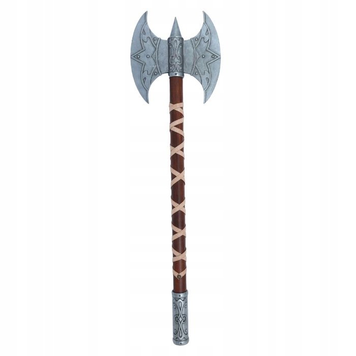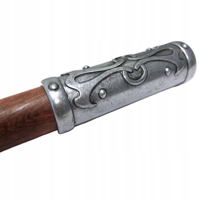 Реплика топора "valquiria" является идеальной реконструкцией инструмента военных действий с впечатляющими параметрами. лезвие со старым серебряным цветом с резными украшениями дает ему уникальный характер. Сплошная конструкция и массивность делают топор излучать с мощным присутствием. деревянная ручка, украшенная застрявшей с ремешком и заканчивалась металлическим вырезанным одеялом, добавляет не только функциональные возможности, но и эстетику.