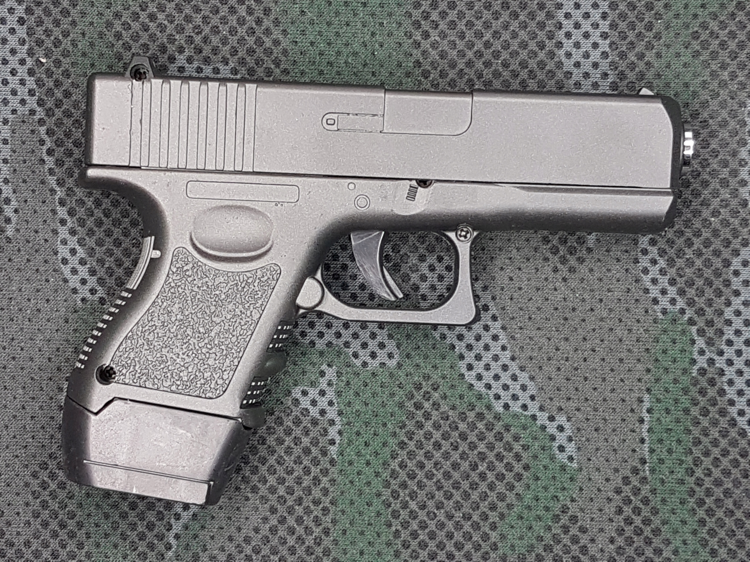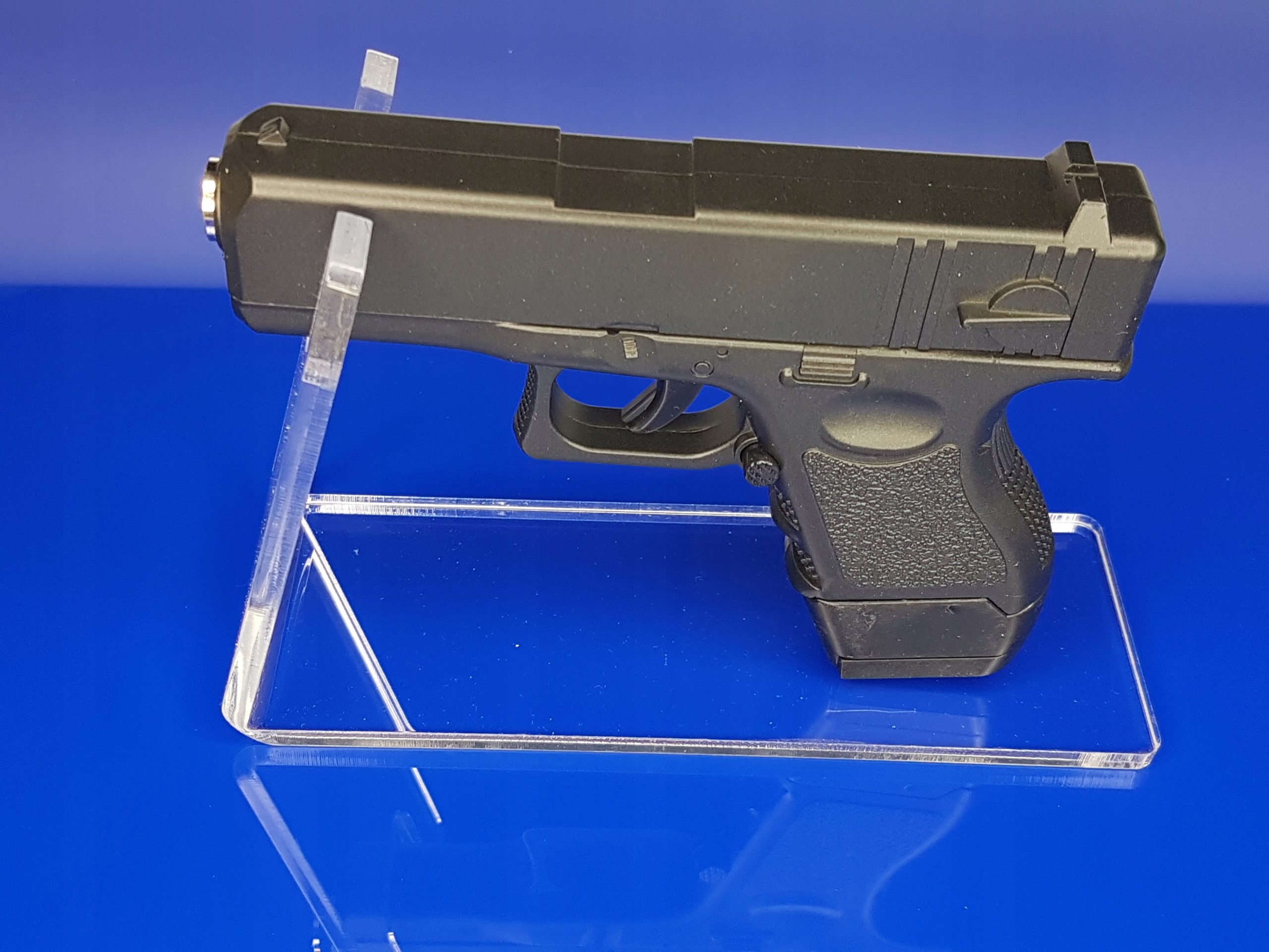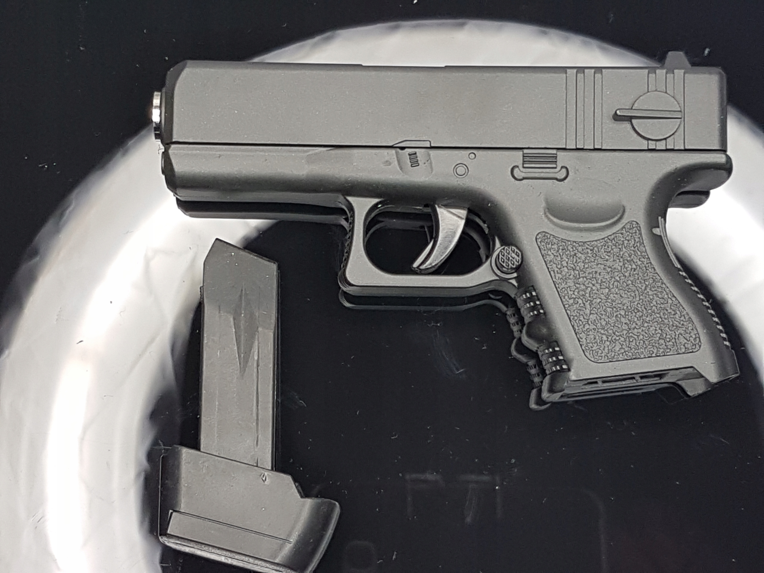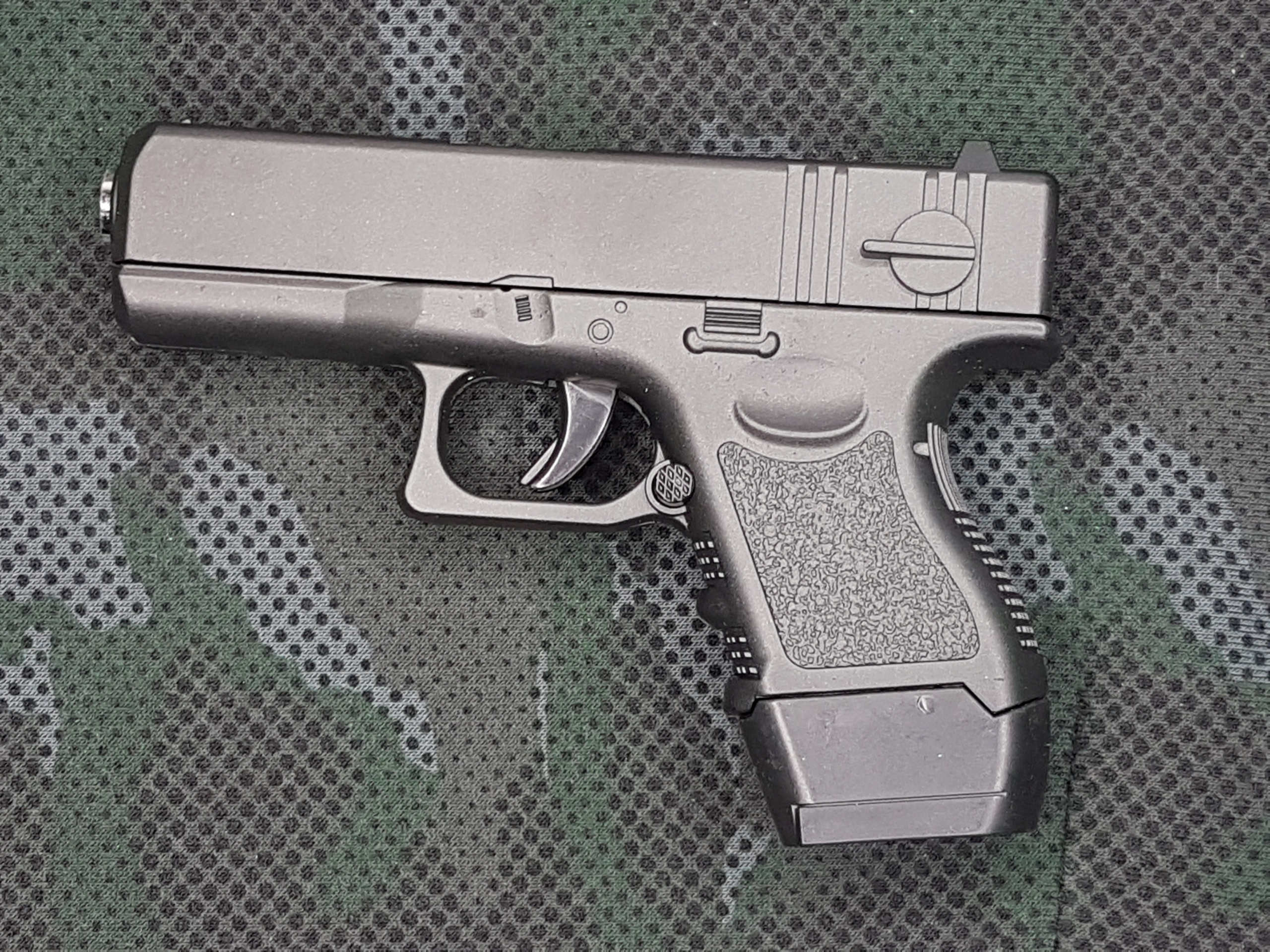 Пистолет ASG 6мм - однозарядная пружинная модель с питанием от рядного магазинного держателя примерно 10 ББ, т.е. после каждого выстрела перезаряжать ружье, отведя затвор назад. Конструкция практически полностью изготовлена из сплава цинка и алюминия (замок, корпус), а также из прочного АБС-пластика - частично магазин, накладки рукоятки и некоторые элементы конструкции механизма. . В комплект входит стартовый набор шариков диаметром 6 мм (около 50 шт.). G19 Galaxy – самая часто покупаемая реплика этого производителя.