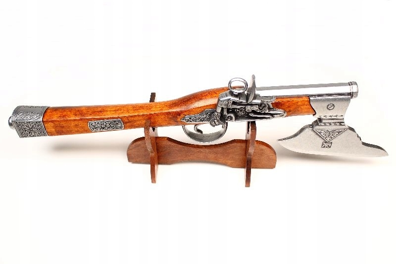 Мы представляем уникальный гибрид NA СТОЯТЬ. Немецкий пистолет с топором 17 века Красивое сочетание с эффектными металлическими украшениями пистолета с топором, способное произвести один выстрел, а затем вступить в рукопашный бой. Классифицируется как оружие с черным порохом. В стоимость входит пистолет и подставка.