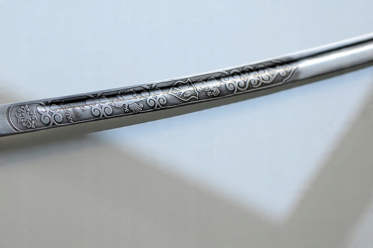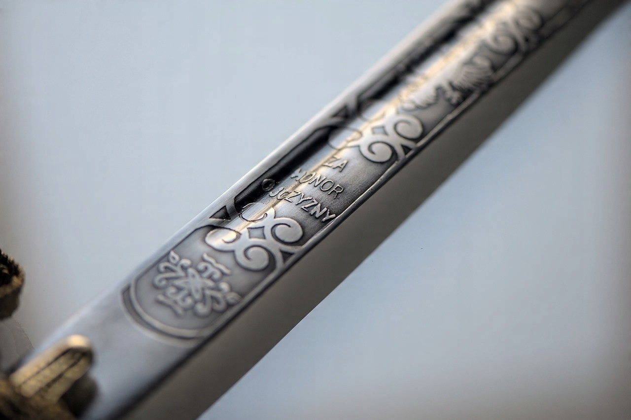 Реплика польской сабли НА СТОЛЕ , изготовленная по случаю Генерала Именины В. Сикорского в 1920 году. Сабли (в основном) изготавливаются из высокоуглеродистой полированной стали. На клинке имеется надпись «За честь Родины».. Полировка производится до получения однородной, матовой, гладкой структуры. Самый интересный элемент — рукоять, стилизованная под голову белого орла с короной. Пожалуйста, не используйте для фехтования сабли – они служат отличным декоративным предметом интерьера, сувениром или подарком. Рекомендуем время от времени консервировать лезвие и ножны очень тонким слоем оливкового масла или другого смазочного средства (это поможет сохранить высокое качество изделия. Идеально подходит для гравировки посвящений).
