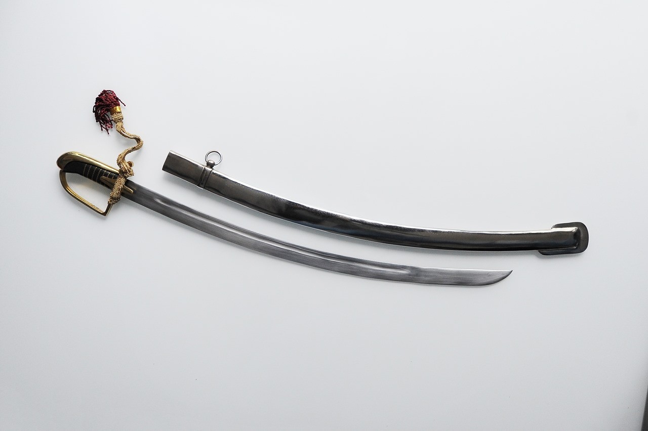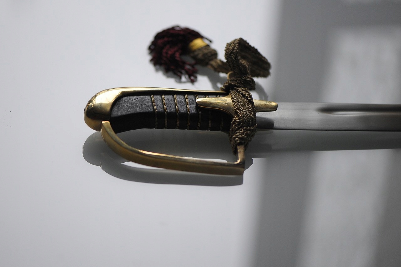 < б>ИСТОРИЯ: Закрытая, однорычажная ручка, латунная рама. Прямая перекладина. Спинная часть перекладины заканчивается круглой, сплюснутой вертикально «каплейкой». Передняя рука согнута под прямым углом и превращается в бантик, полукругло согнутый в верхней части, соединенный с головой. Голова с клювом слегка наклонена вперед. Навершие навершия с длинной тесьмой, доходящей до перекладины. В верхней части головки имеется винт с прорезью для отвертки. Рукоять деревянная, обтянута черной хромированной кожей, с горизонтальным рифлением и обвита латунной, спирально скрученной проволокой. Под ручкой имеется кожаная накладка. Сабля такой конструкции была самой популярной саблей в межвоенный период. Приказом военного министра № 280 от 12 апреля 1921 г. сабли wz.1921/22 были введены в Войске Польском как уставное оружие для всех родов вооруженных сил. Первоначально для сабли была утверждена конструкция клинка, стачивавшегося в один спинной паз, но приказом № 79 31 января 1922 года в офицерских саблях был разрешен клинок с тремя узкими насечками. Помимо офицерской сабли, существовали также унтер-офицерские сабли wz.1921/22 и солдатские сабли wz.1921. ИСТОЧНИК: Музей Войска Польского
