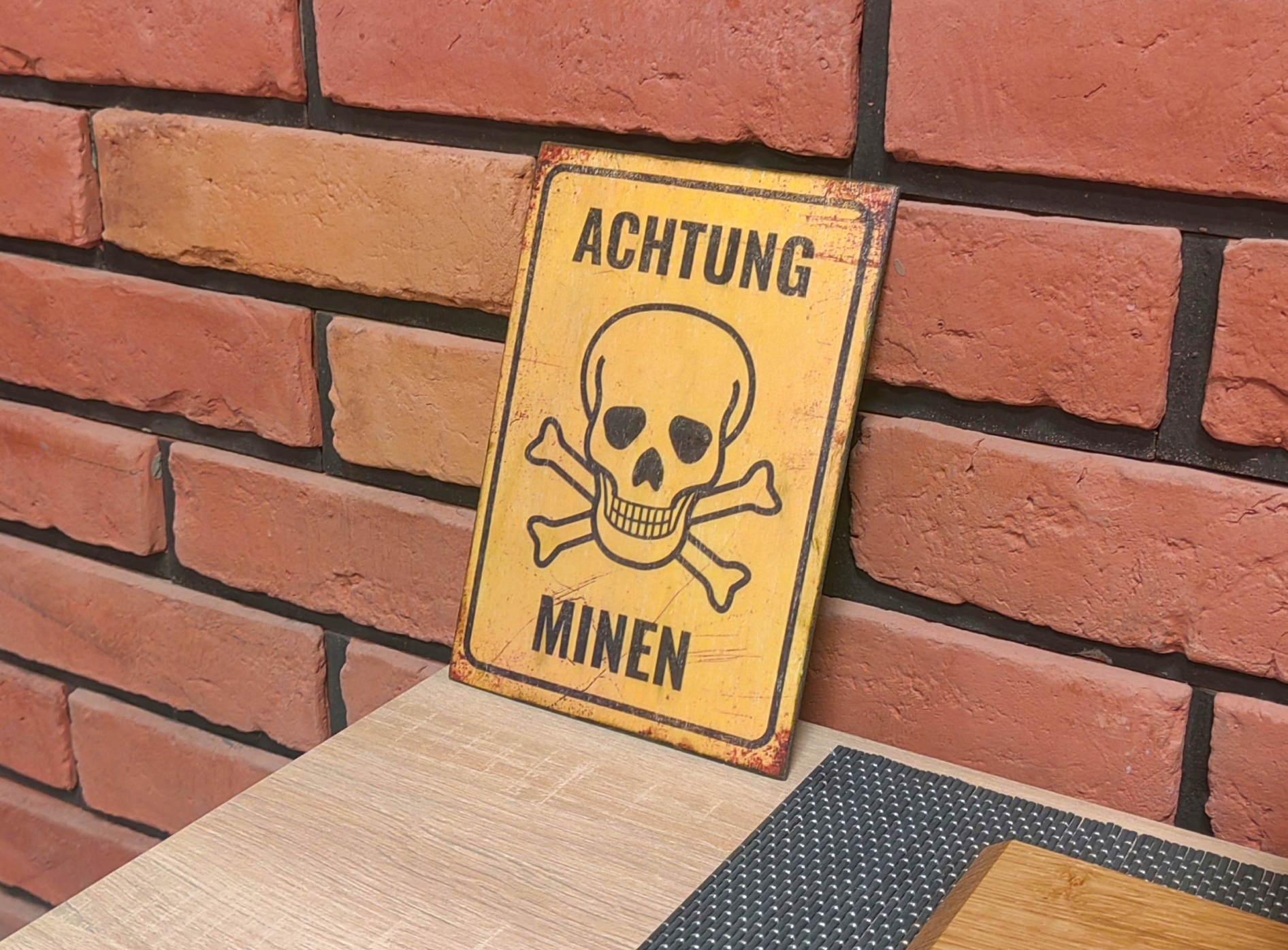 Высококачественная, ручная копия информационной платы Achtung Minen. Используемые материалы, кажется, похожи на оригинальный металлический объект.
