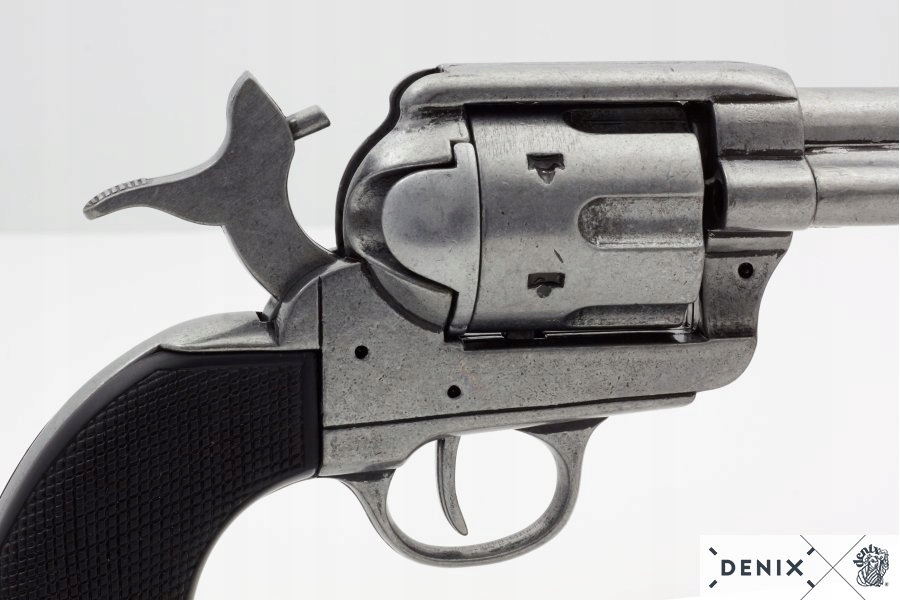 Копия револьвера .45 «Миротворец» 1873 года. Реплика изготовлена из ZnAlu. У Colt вращающийся барабан с шестью патронниками. Барабан может вращаться непосредственно - путем переведения курка в полувзведенное положение или поворачиваться автоматически механизмом при взведении курка в полное положение. Возможность отдать так называемую сухая дробь.