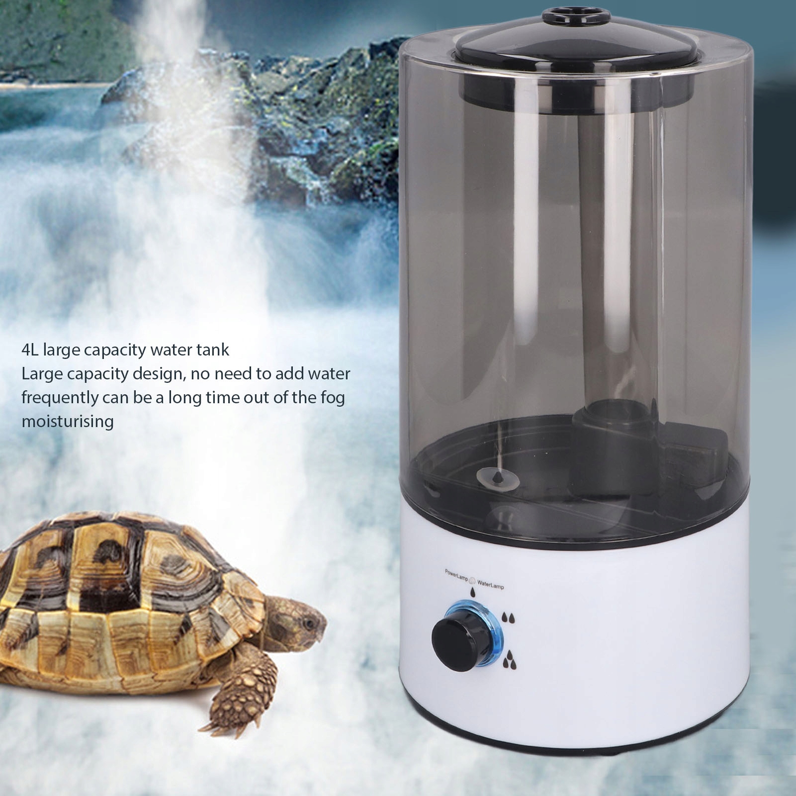 5. Простота в использовании: контролируйте уровень тумана с помощью непрерывного регулятора, что делает регулировку уровня влажности для ваших рептилий простой и удобной.
