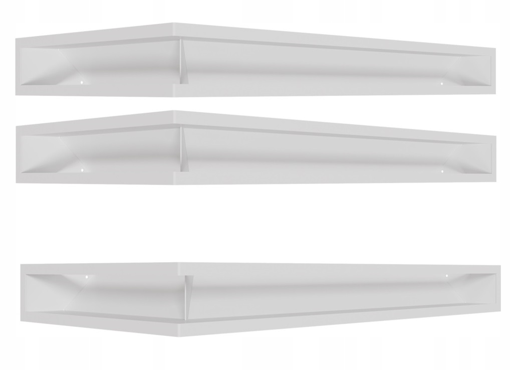 Набор из 3-х шт каминных решеток люфтового типа 45S угловых 800х400х90 для камина с правым боковым стеклом - белые - 2 шт ВВЕРХ и 1 шт НИЗ