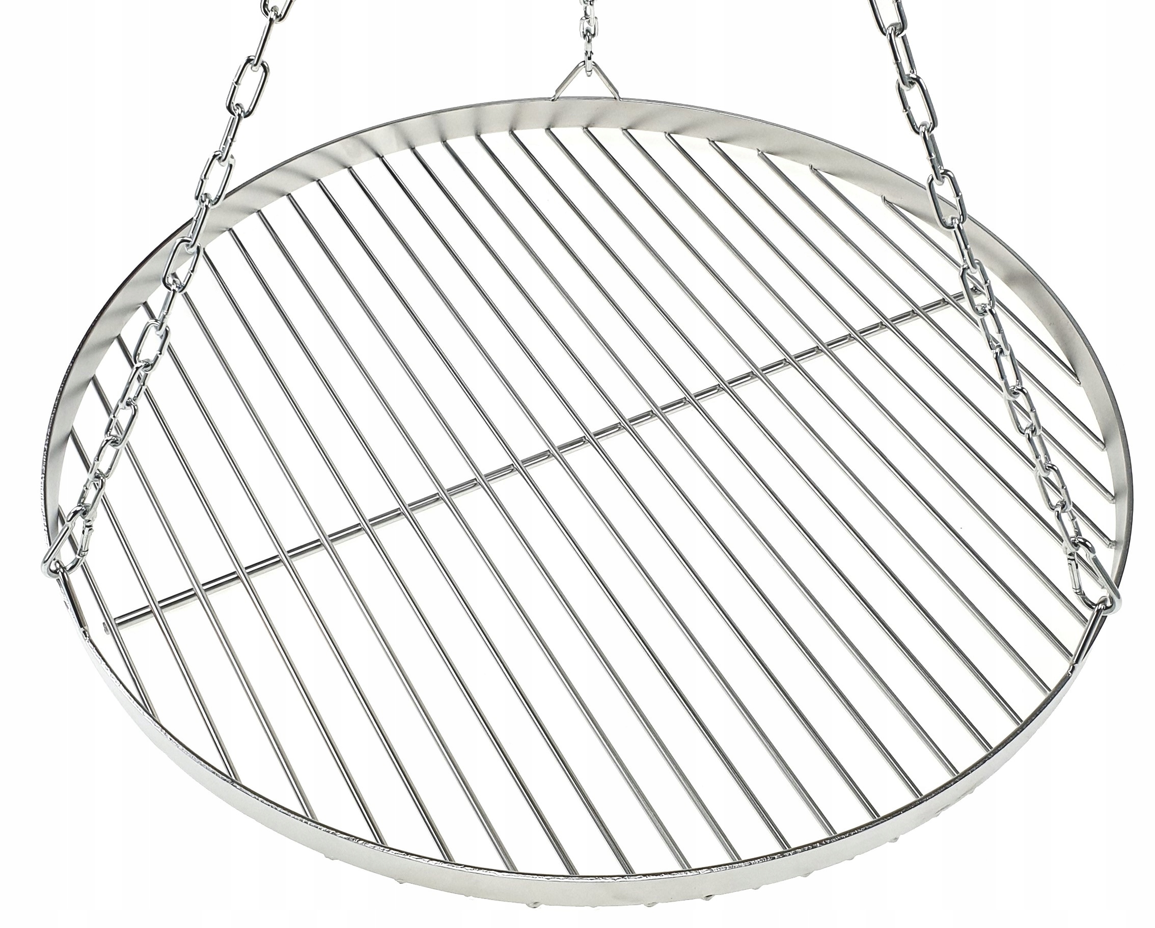 Круглая решетка из высококачественной нержавеющей стали диаметром 50 см + комплектная гальваническая цепь с карабинами для подвешивания решетки. над камином
