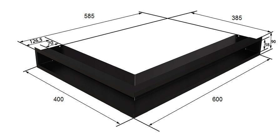 Решетка камина правого люфта 600x400x90 черная 3шт