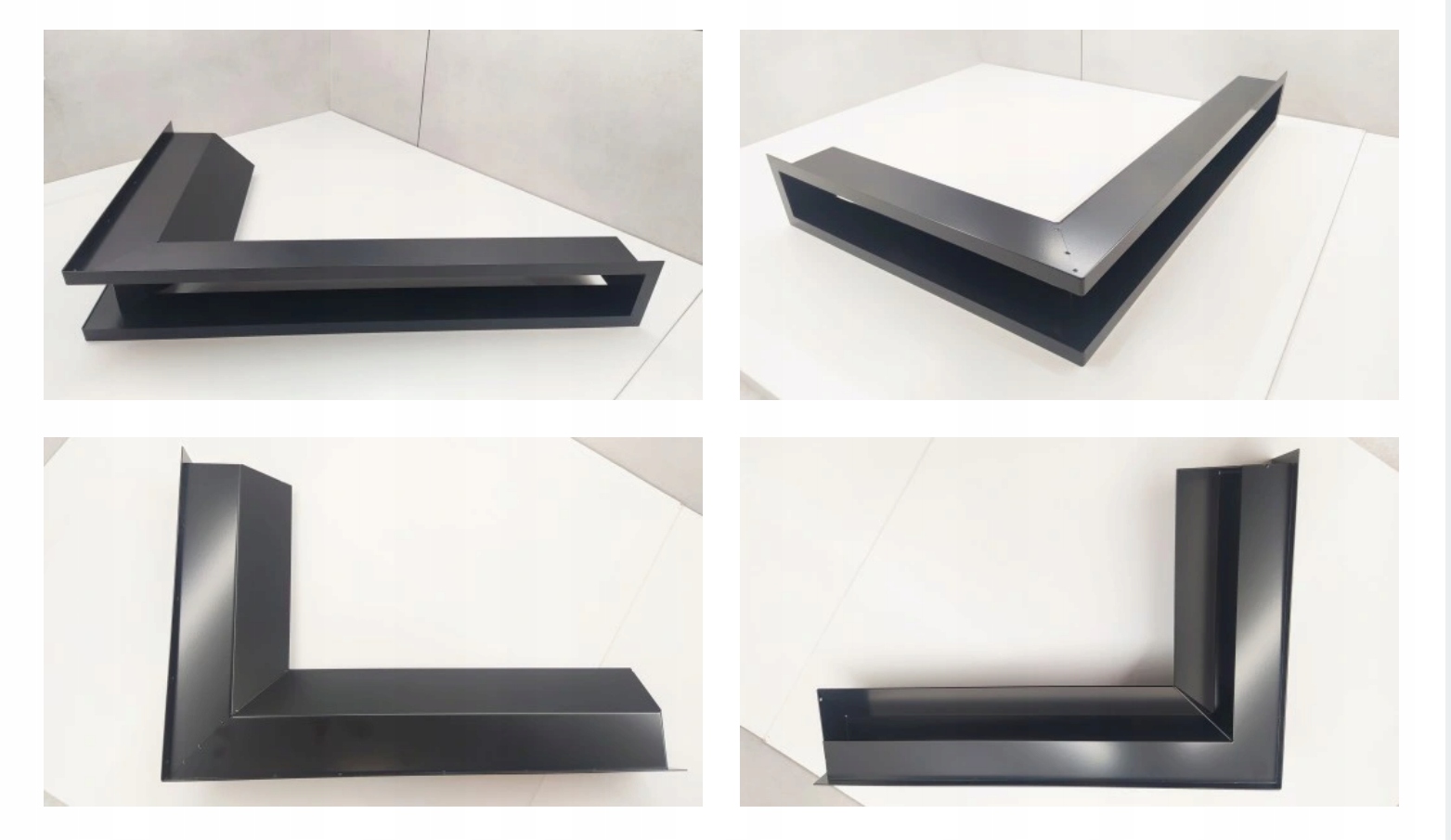 Комплект из 3 шт. каминных решеток люфтового типа 45С угловой 600х400х90 для камина с правым боковым стеклом - черный цвет - 2 шт ВВЕРХ и 1 шт НИЗ