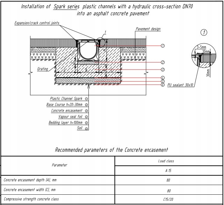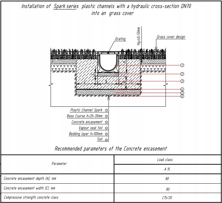 Пластмассовый лоток Easy1 DN70, решетка пластиковая, класс А15 Н90