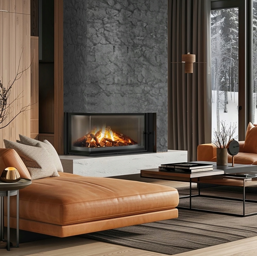 - Широкий обзор огня - панорамное стекло с современной стальной рамой