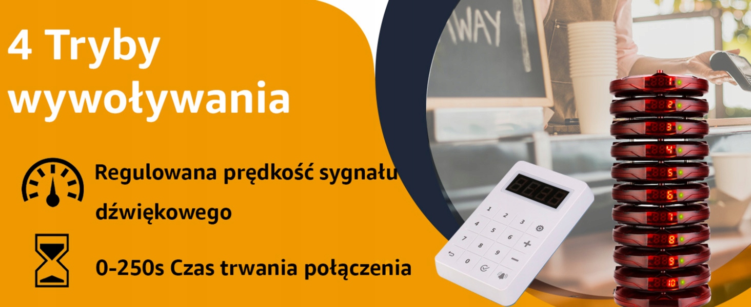 - 4 режима управления, вибрация + зуммер + свет, вибрация + свет, световой зуммер + свет, несколько режимов работы на выбор для разных мест; широкое использование в ресторанах; кафе, банк; завод, больница и т. д.